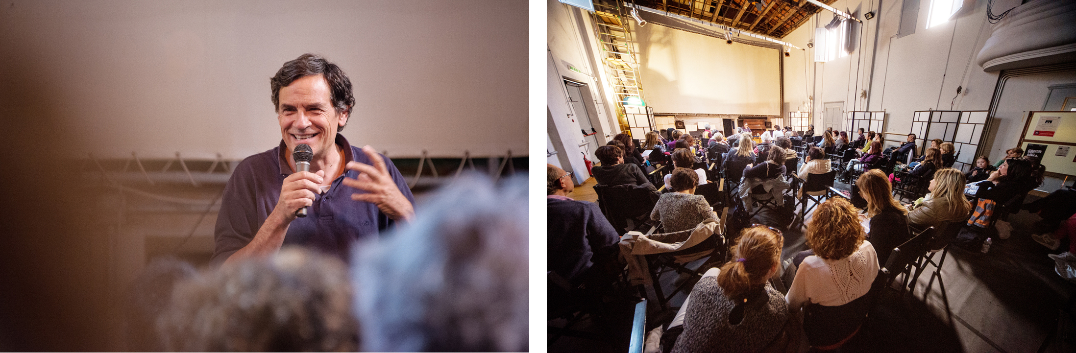 Il pubblico ha seguito con attenta e sentita partecipazione, ha posto domande e riportato esperienze a cui Lorenzoni ha risposto condividendo le sue proposte innovative e sottolineando specifici temi tra cui: il tempo dell’esperienza vissuta in prima persona dal bambino; il valore della scoperta e della libertà di creare prima ancora di acquisire informazioni e imparare delle regole; l’accesso alla conoscenza attraverso linguaggi diversi a seconda delle predilezioni percettive di ciascun bambino; la cultura e la bellezza come mezzi che portano il bambino a rispecchiarsi e conoscere se stesso; il coinvolgimento affettivo nei processi di conoscenza; il rapporto con la natura; il teatro come esperienza che impegna il singolo rispetto a un obiettivo condiviso dal gruppo…